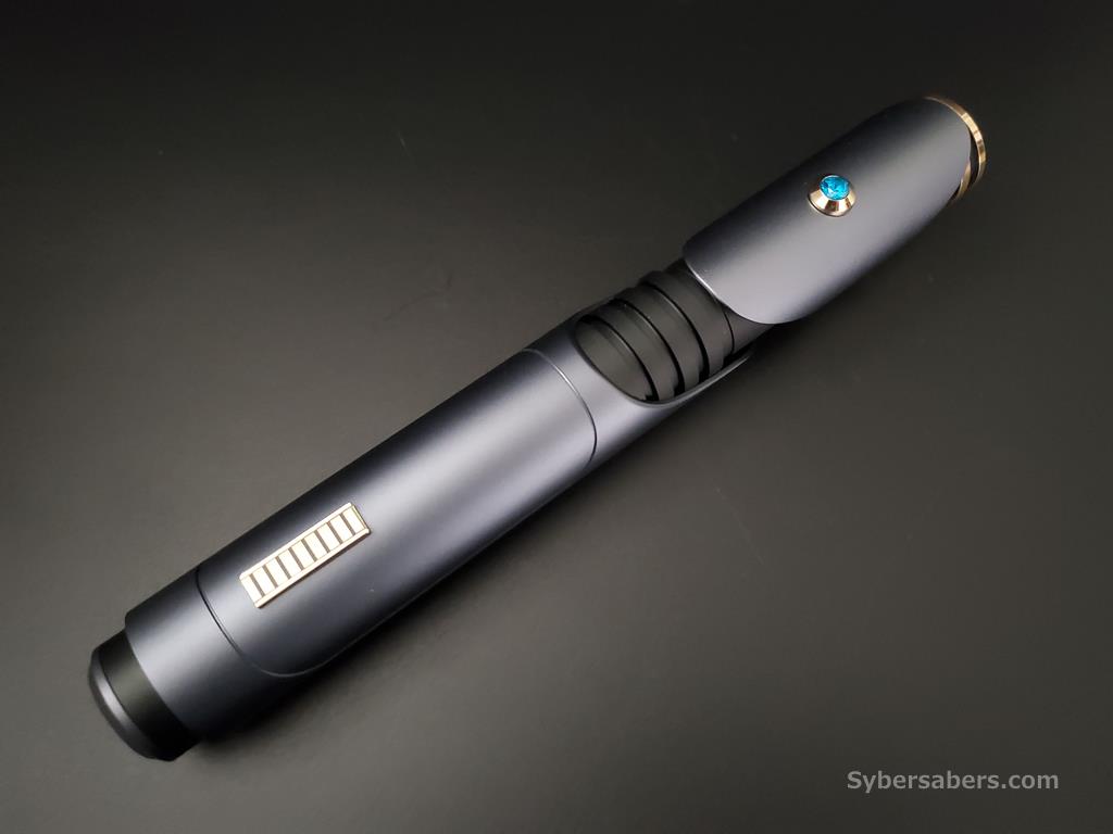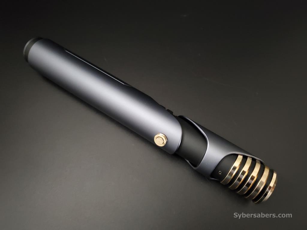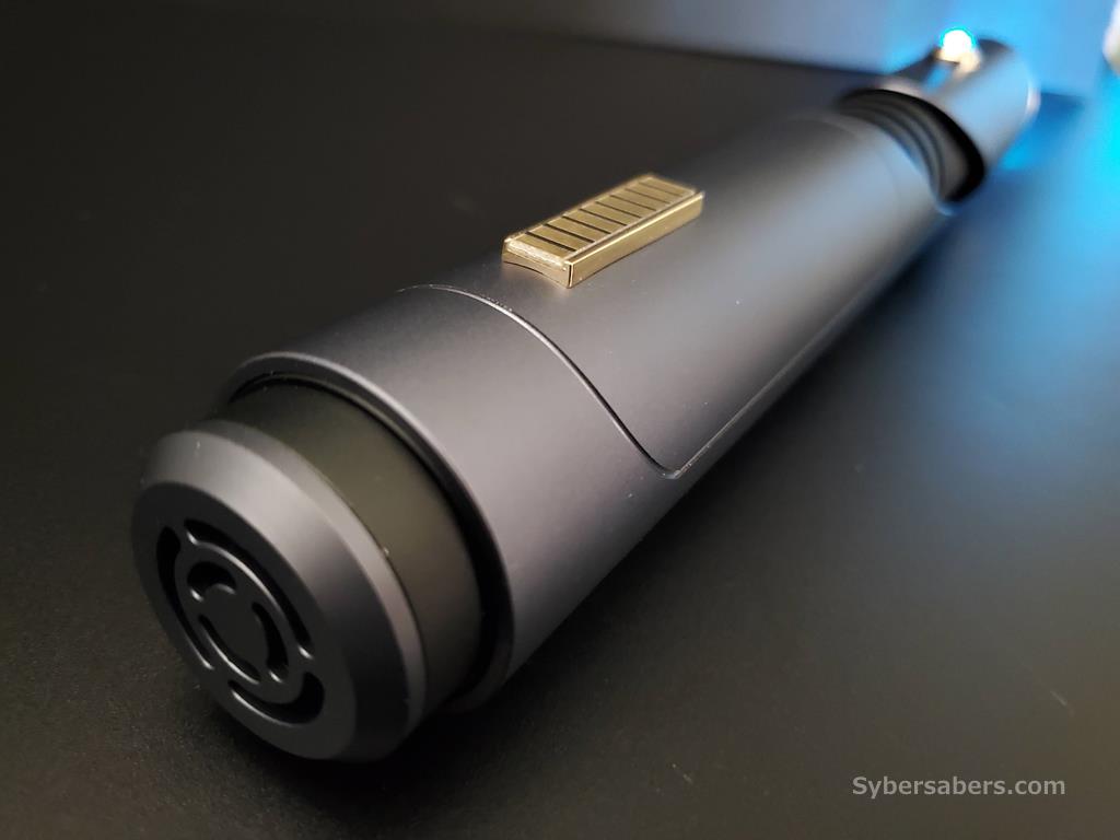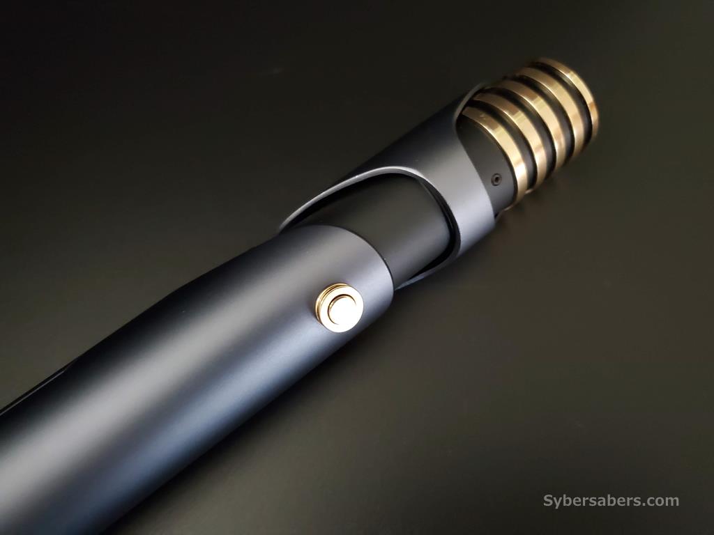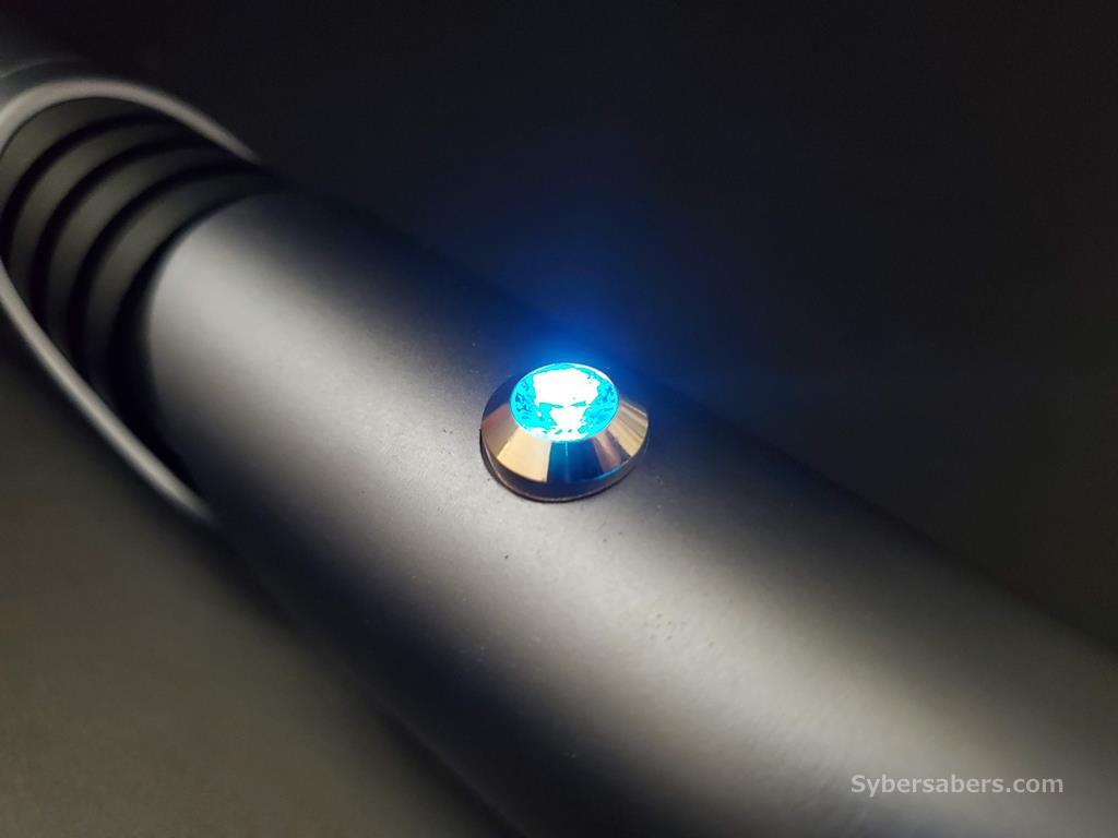 1ボタン式 ですが、Proffieboardを搭載しておりますので、操作性も高く十分な機能を備えております。エミッター付近にあるクリスタルパーツはブレードの光りを透過します。