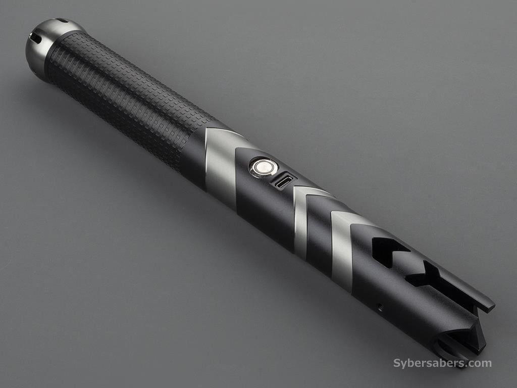 ブラック×ガンメタルのカラーリングでグリップ部分にはローレット加工が施されています。ポンメルは丸みを帯びた西洋風デザインになっています。