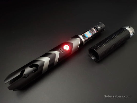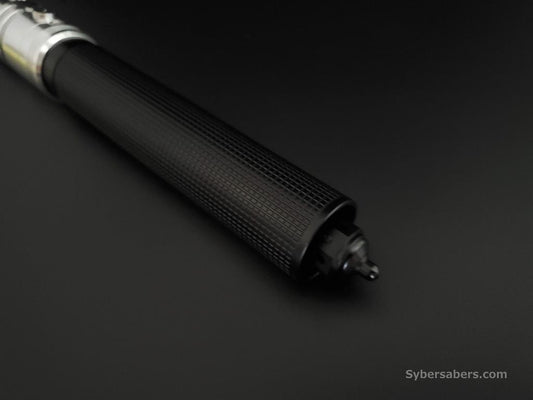インヒルトLED(RGB-X)のモデルは懐中電灯のようにヒルトに埋め込まれたハイパワーLEDで発光する方式です。ネオピクセルと比べ光量は劣りますが、ブレードも軽く、電池消費も少ないことから長時間の使用が可能です。