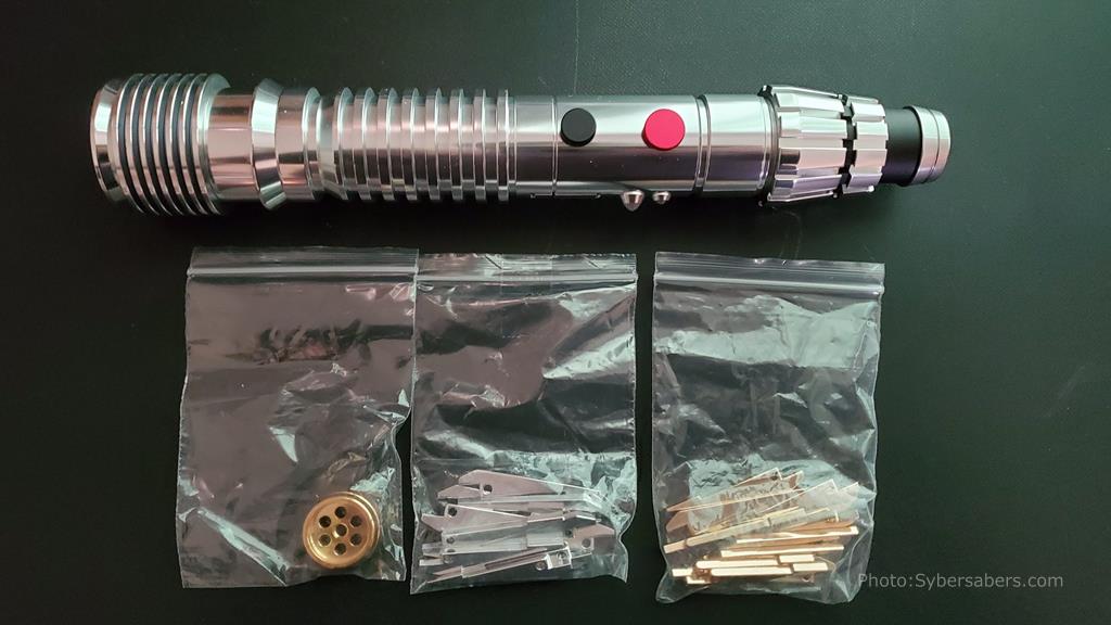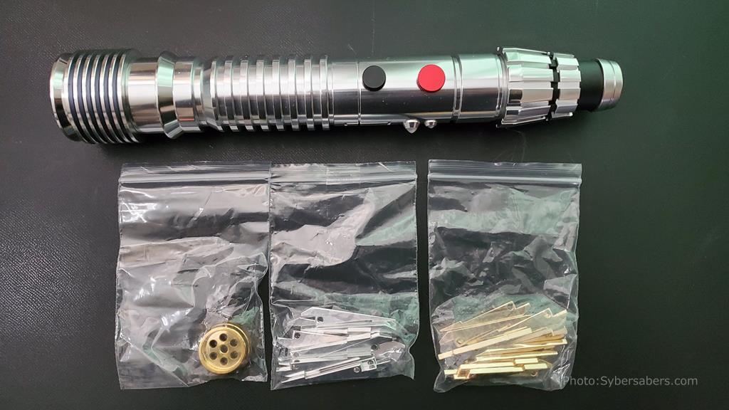 シルバーとゴールドのポメル/フィンが付属しているので、3種類の異なるキャラクター(MW EP1、PLO EP2、LUMINAR EP2)のデザインにもすることができます。