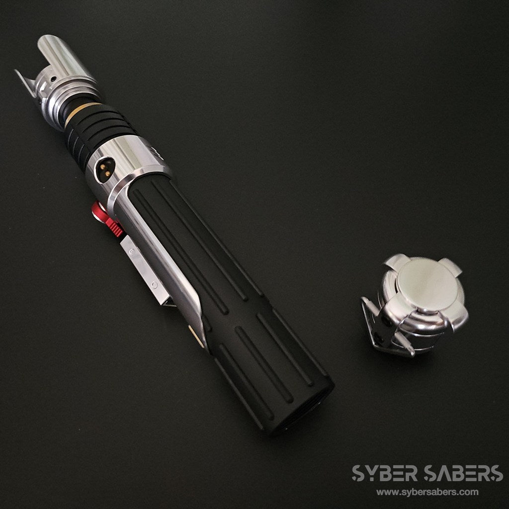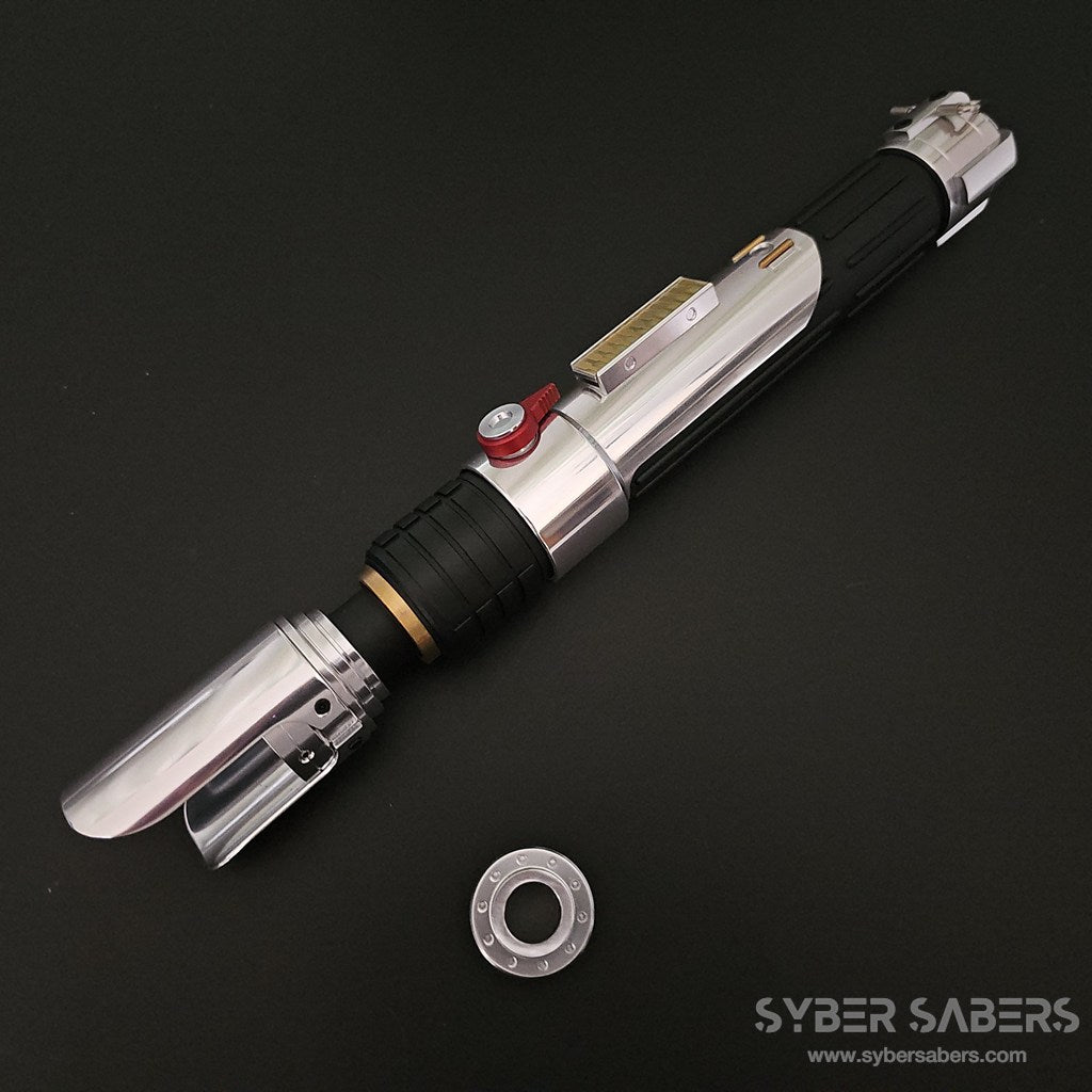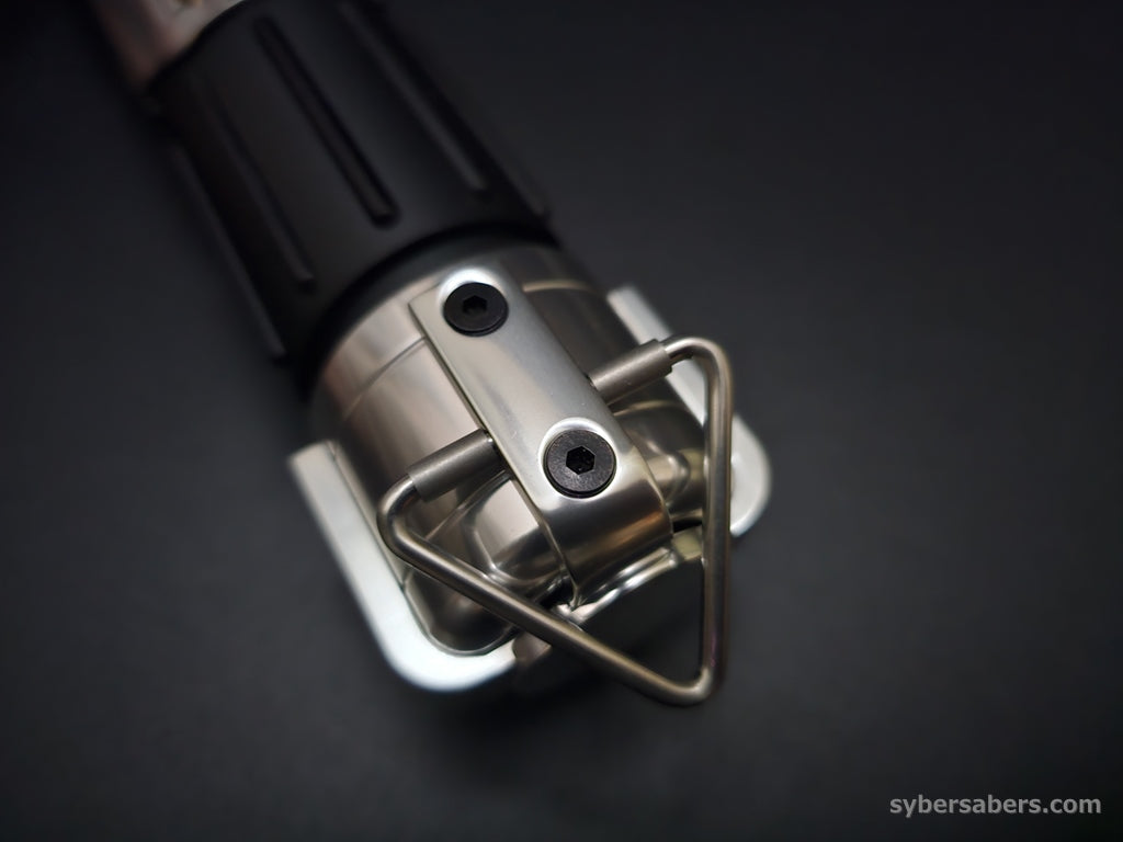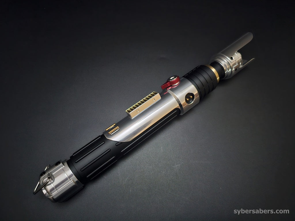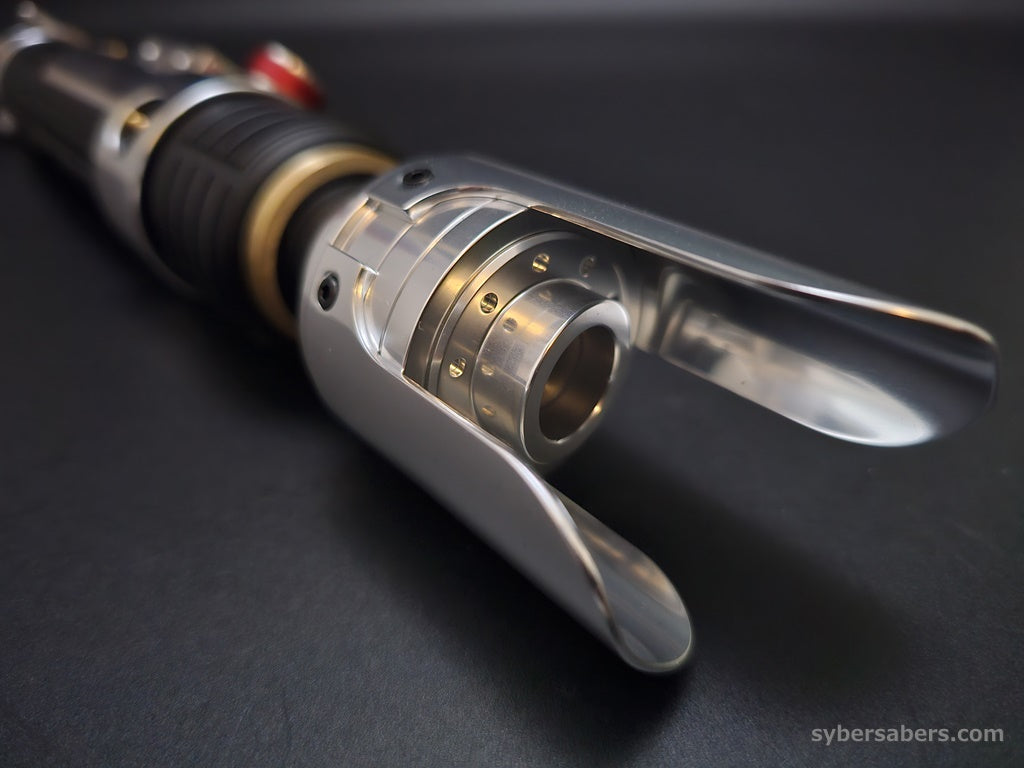 スクリーンプロップをベースに設計した原作忠実なセーバーです。細部のディテールはもちろん、スイッチアクションも原作同様にレッドのトグルスイッチを採用。クランプ部分の上下もPWR・AUXと接続されており、同時押し操作が可能です。