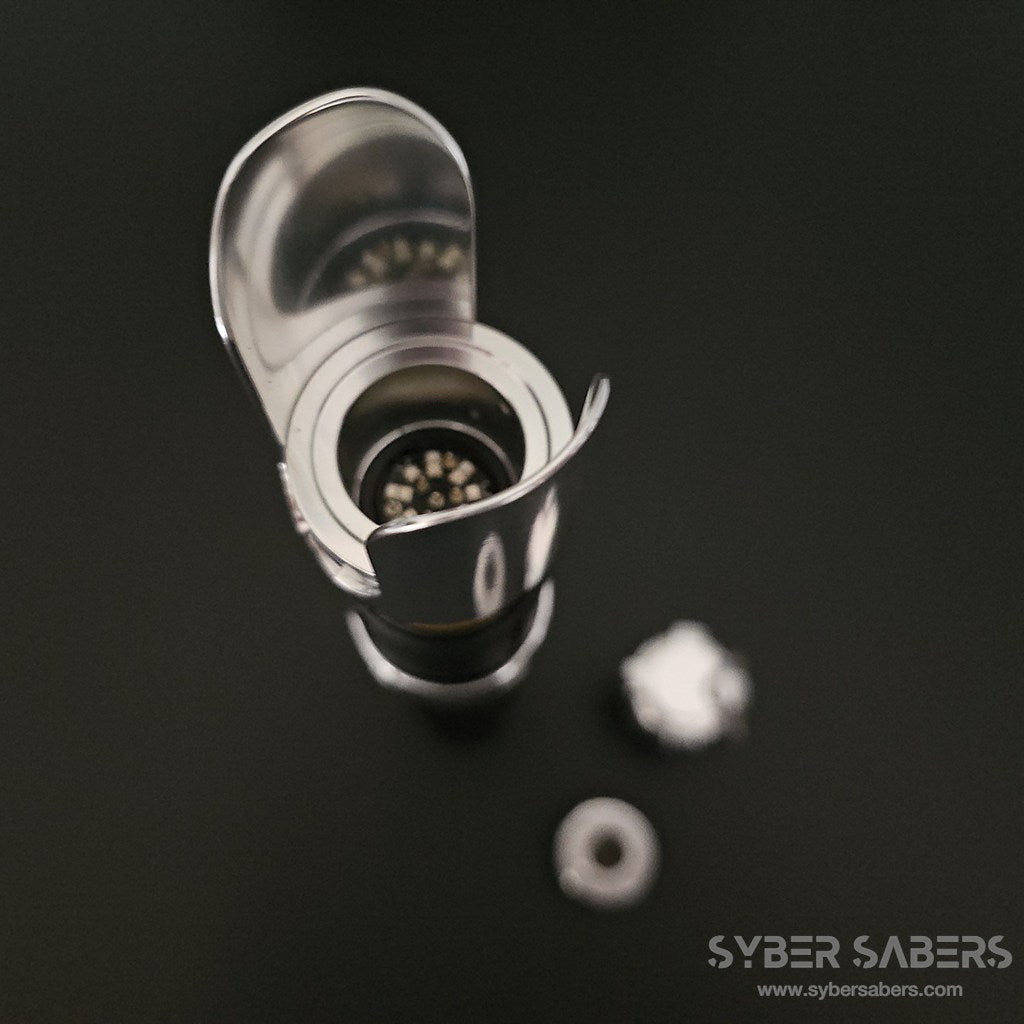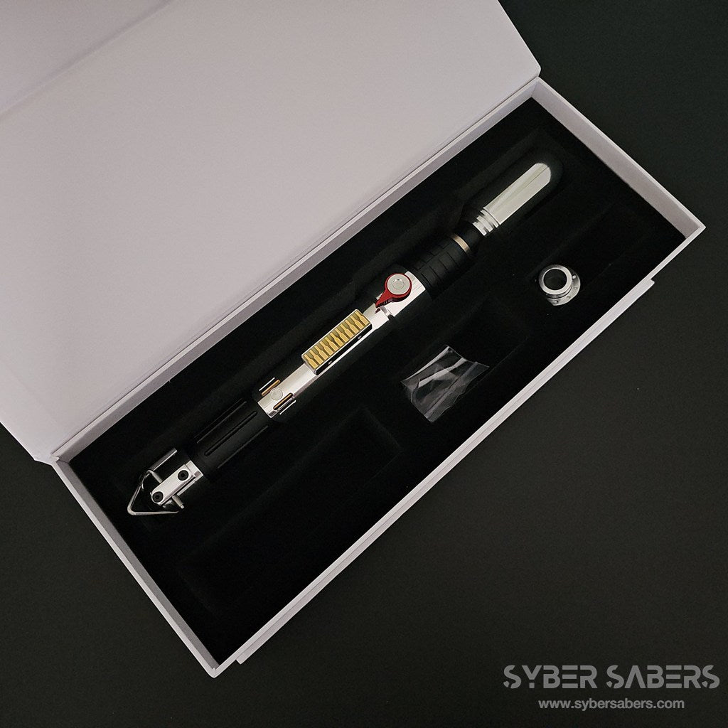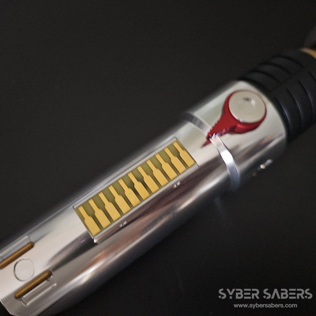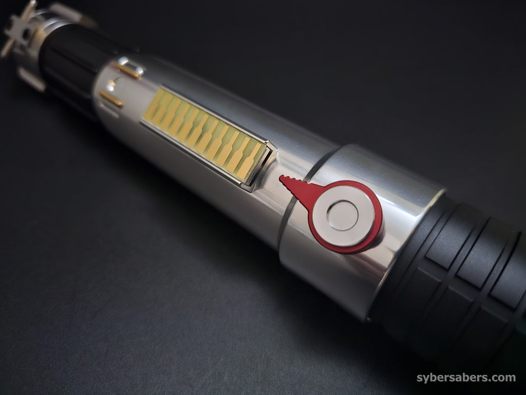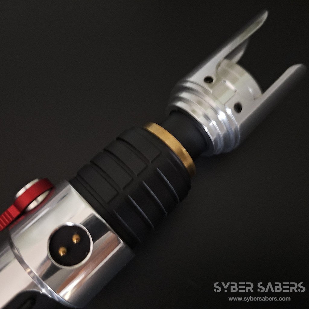 スクリーンプロップをベースに設計した原作忠実なセーバーです。細部のディテールはもちろん、スイッチアクションも原作同様にレッドのトグルスイッチを採用。クランプ部分の上下もPWR・AUXと接続されており、同時押し操作が可能です。