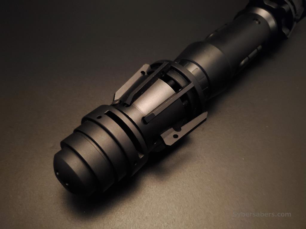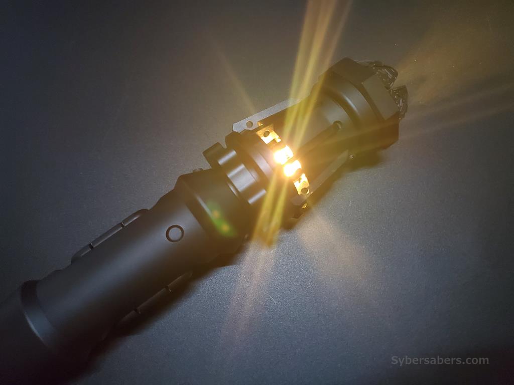 原作同様、ネック部分を回転させることで起動するスイッチアクションを再現。エミッターのスリット部分にはブレードLEDとは別にテープLEDを搭載し、360度均一に発光します。