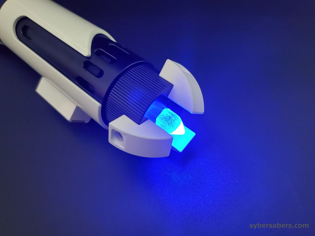 ポンメルのクリスタルはブレードカラーと連動して発光します。