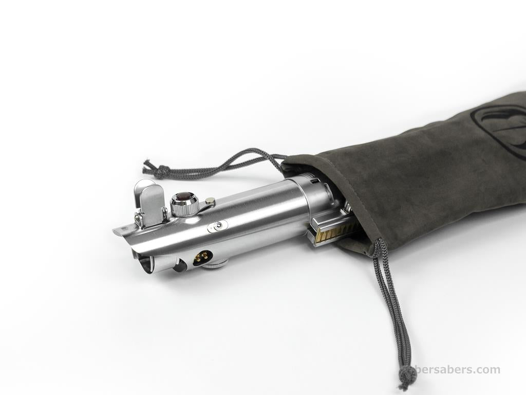 サイズは34cm×12cmで、標準的なサイズのセーバーが1本収納できるようになっています。柔らかく厚みのある生地が使われているので、保管だけでなく、持ち運びの際の傷を防止する用途としてお使い頂けます。厚みのある布素材ではありますが耐衝撃性はございませんので予めご了承ください。