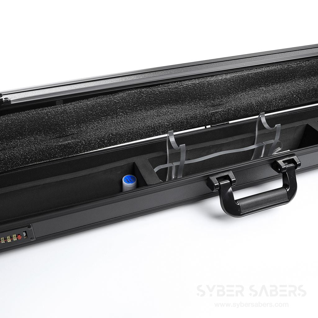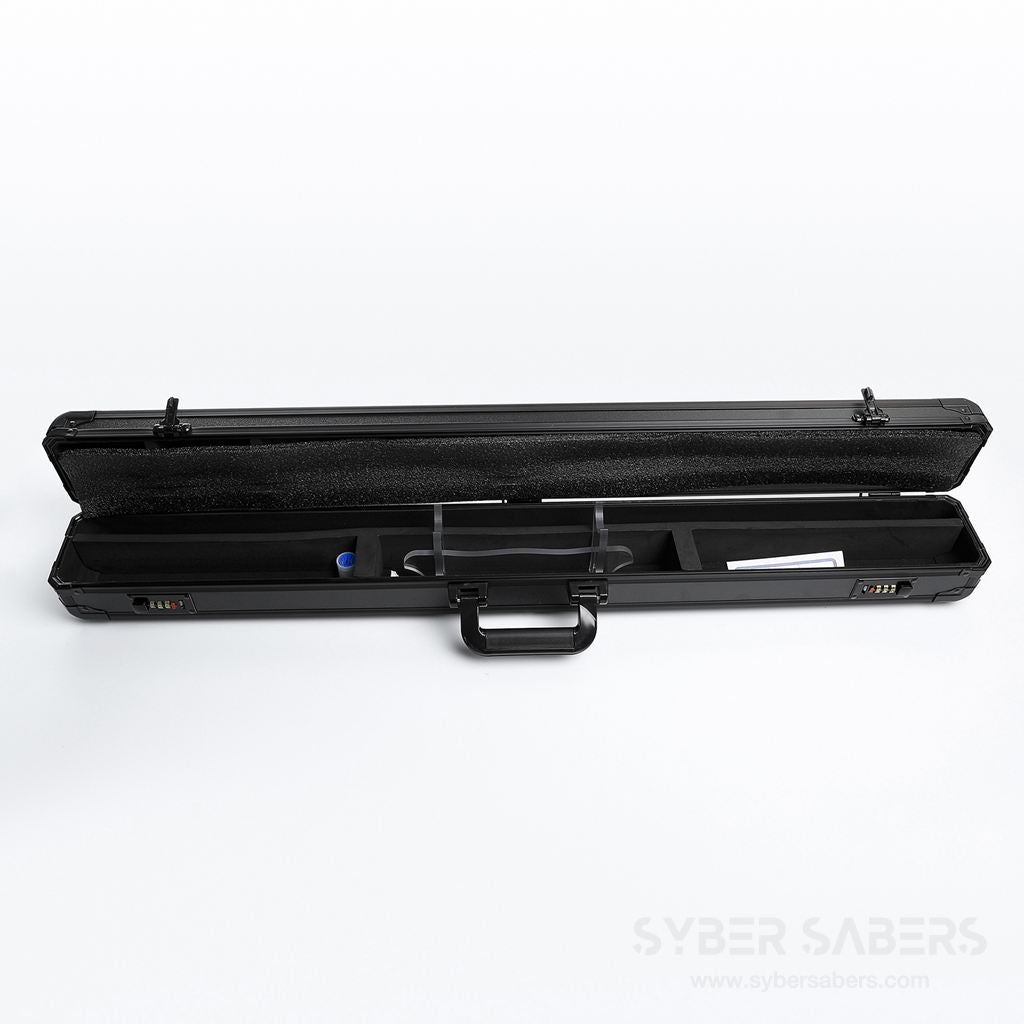 ブレード2本と、最大2本までのセーバー本体を収納可能。内部には仕切りとクッション材※を備えており、ダイヤル式ロックも搭載しているため、イベントへの持ち運びや、大切なコレクションの保管にも最適です。