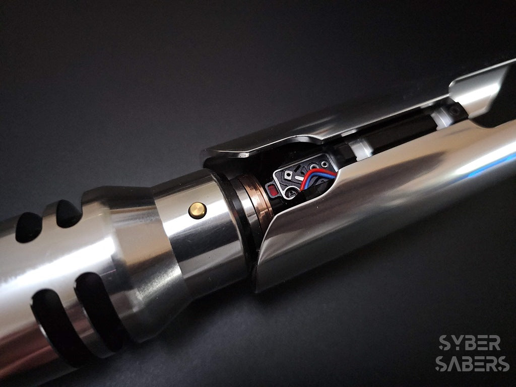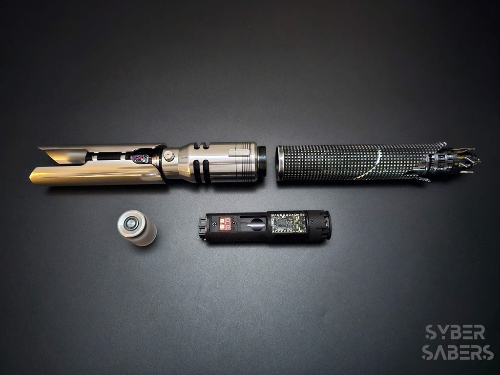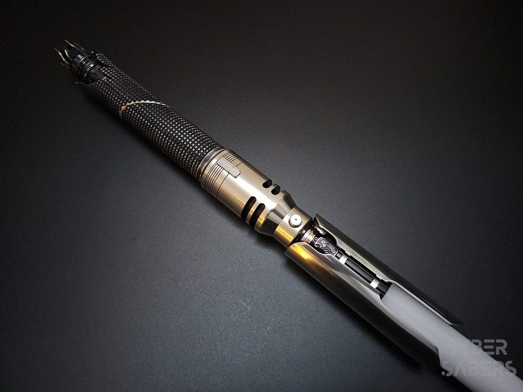 Jedi Fallen Orderをプレイされているとのことで、カルのセーバーに対するこだわりがあったかと推察します。造形やヒルトの軽さ、そしてサウンドのクリアな音量と響きについてお褒めいただき、心より感謝申し上げます。おっしゃる通り、ウェザリング版はグリップ部分のダメージがあるため、音の通りがよく、クリーン版と比べても音が鮮明に聞こえる印象です。