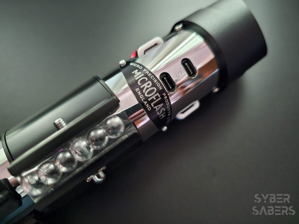 The board is installed with Proffieboard, which has the most extensive functionality of any board. While it has basic functions such as smooth swing, blaster, and lockup, you can also enjoy the latest features such as auto-lockup and auto-stab.