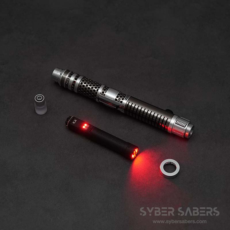 This saber is equipped with crystals in the pommel and inside the emitter, and the crystals have the ability to light up in sync with the blade's activation state.