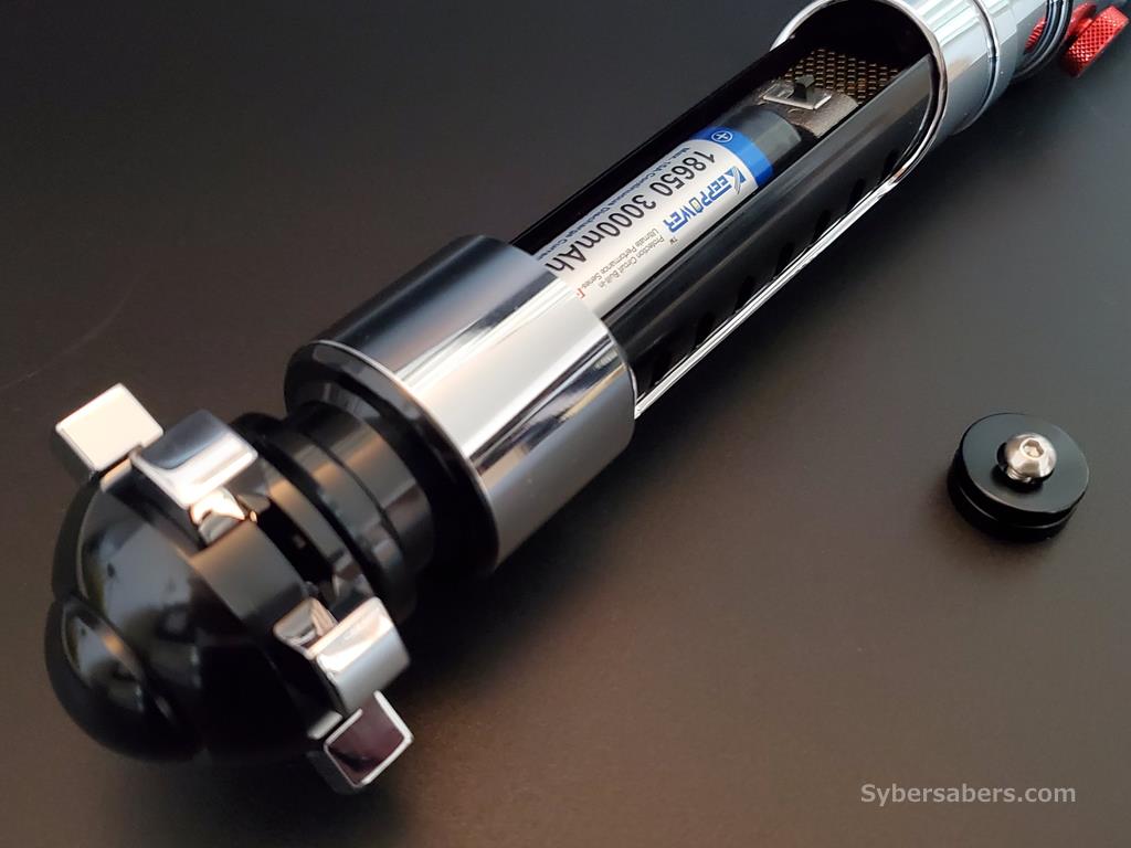 • Access to the chassis can be achieved by unscrewing the CoverTech wheel on the back of the hilt and removing the silver cover.