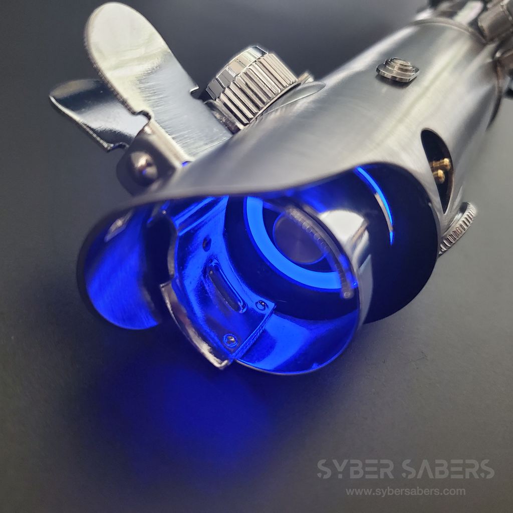 • Access to the chassis can be achieved by unscrewing the CoverTech wheel on the back of the hilt and removing the silver cover.