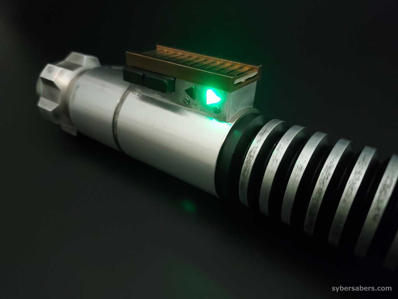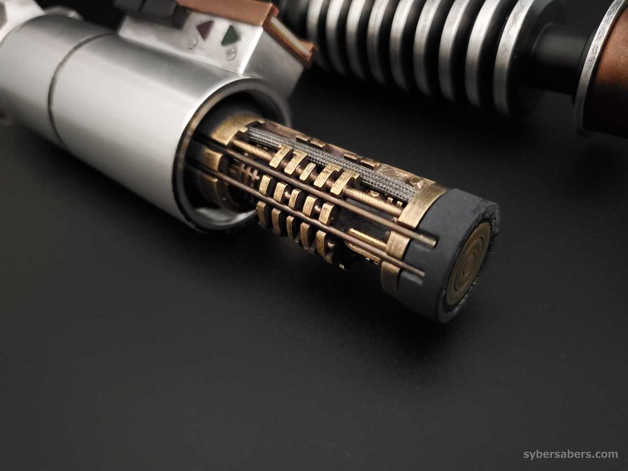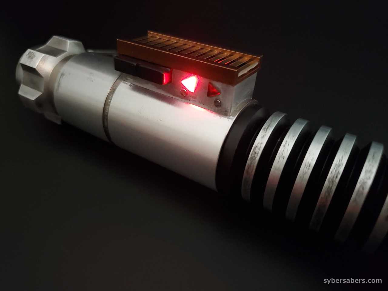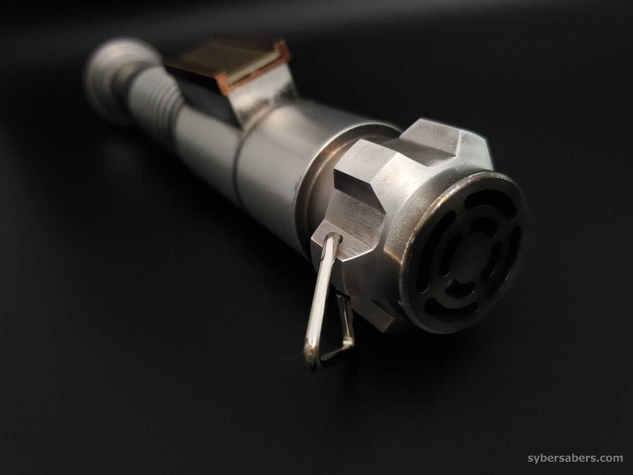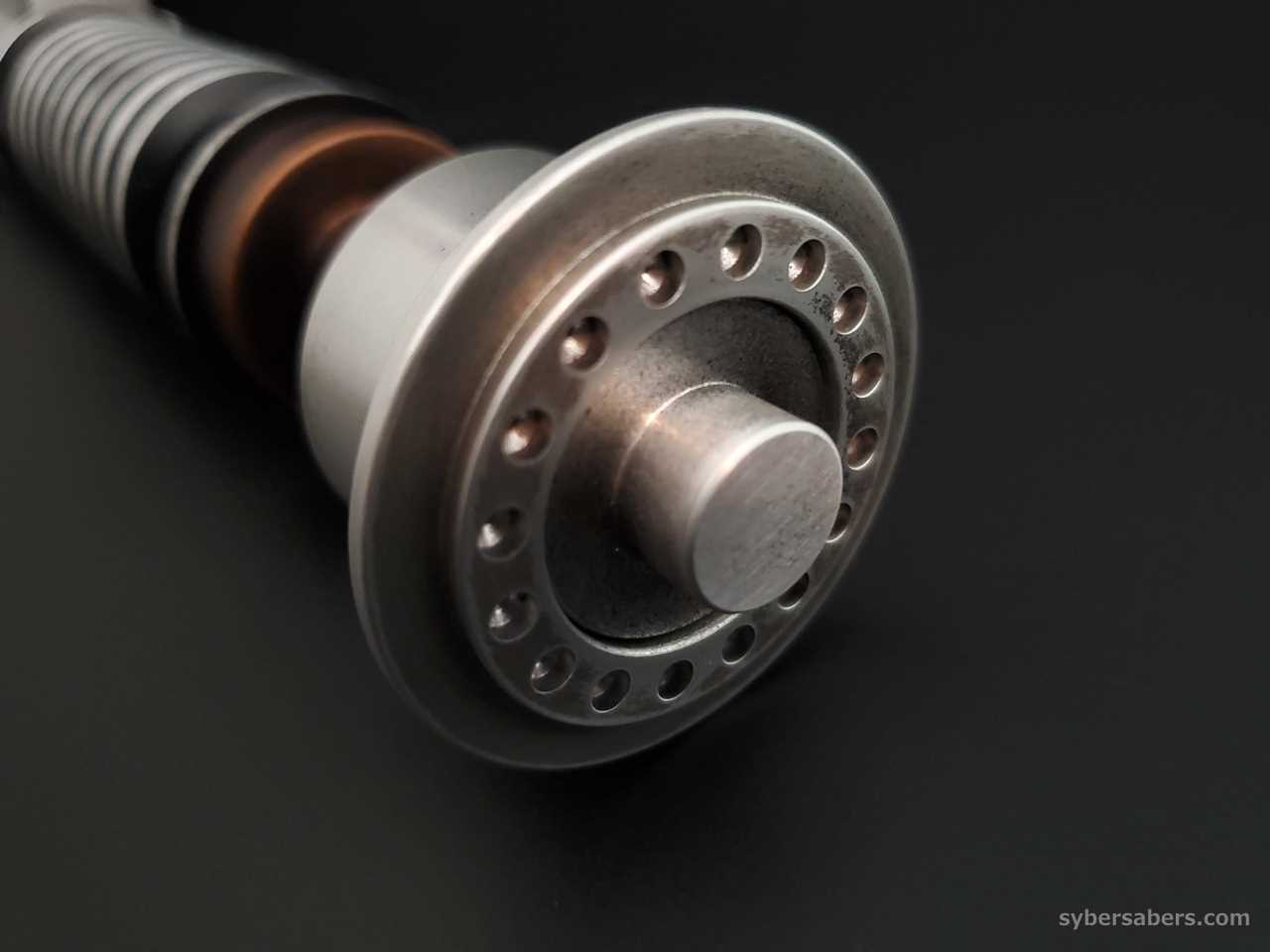 This is an installation using Roman Props' EP8 Luke Skywalker model "BALANCE V4 Weathering Version". The bellows of this hilt have a uniform pattern, and the emitter design has heat dissipation holes like the Obi-Wan EP4 model.