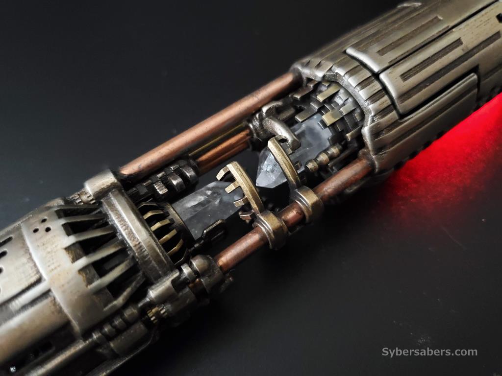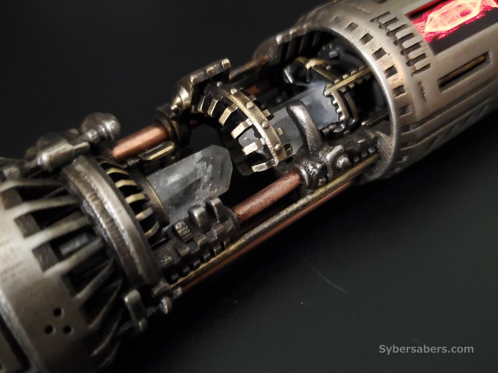 The crystal is a double crystal type that uses natural quartz. The beauty of the crystal stands out in combination with the weathering of the chassis. An OLED (monitor) is installed on the back, and the monitor color is Vader-like red to create a unified design.