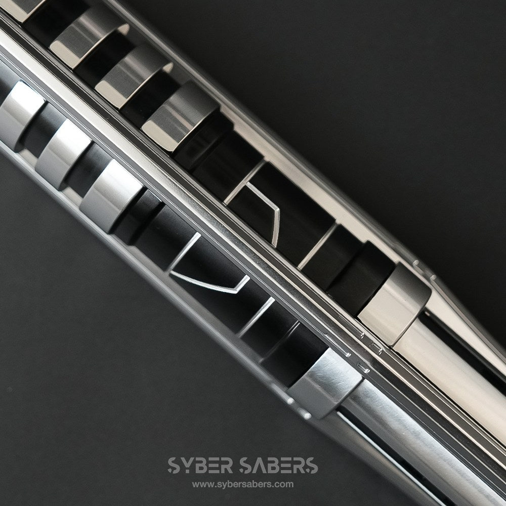 特徴的な紫の光刃(ブレード)を放つこのセーバーは、ゲーム内のモデルを基に細部のディテールからサイズ感に至るまで徹底的に再現されています。エミッターを包み込むような鋭く美しいプロング(爪)デザインや、シルバーとブラックのコントラストが際立つヒルト形状など、オールド・リパブリック時代を象徴するプレミアムなコレクターズアイテムとなっています。