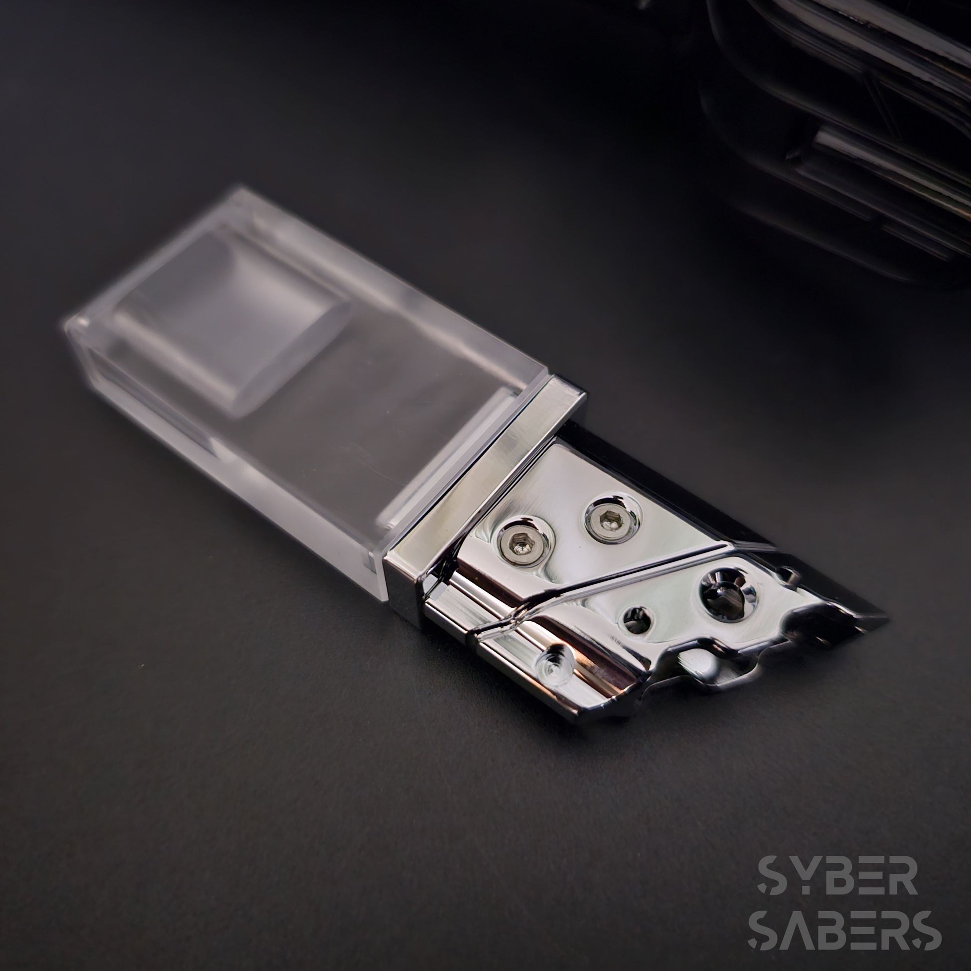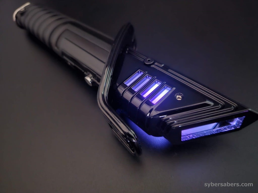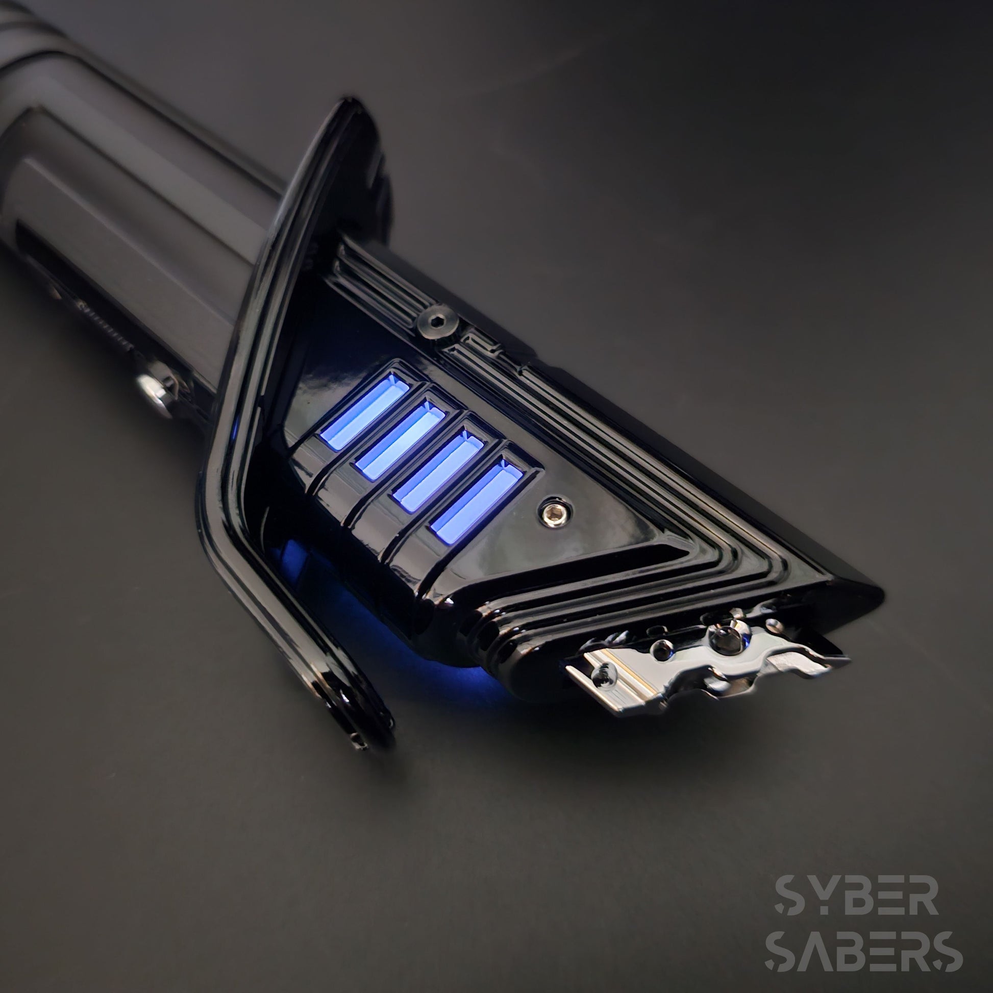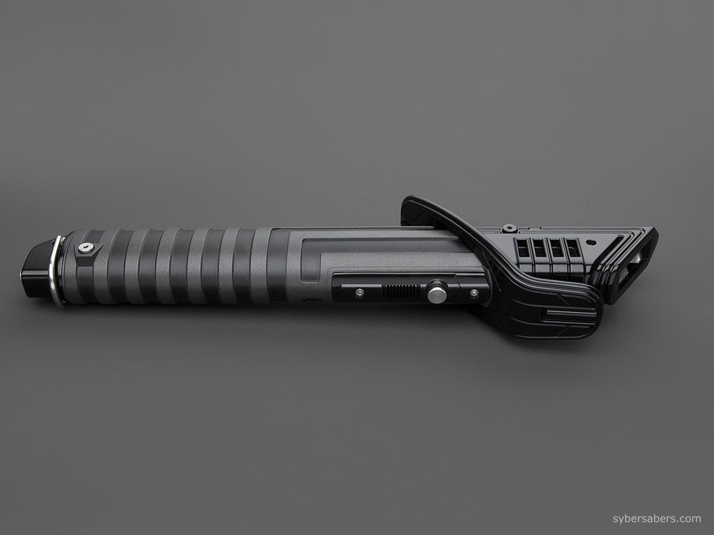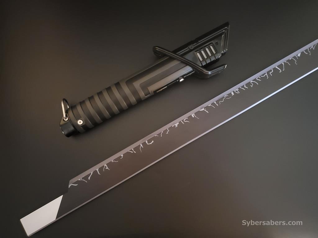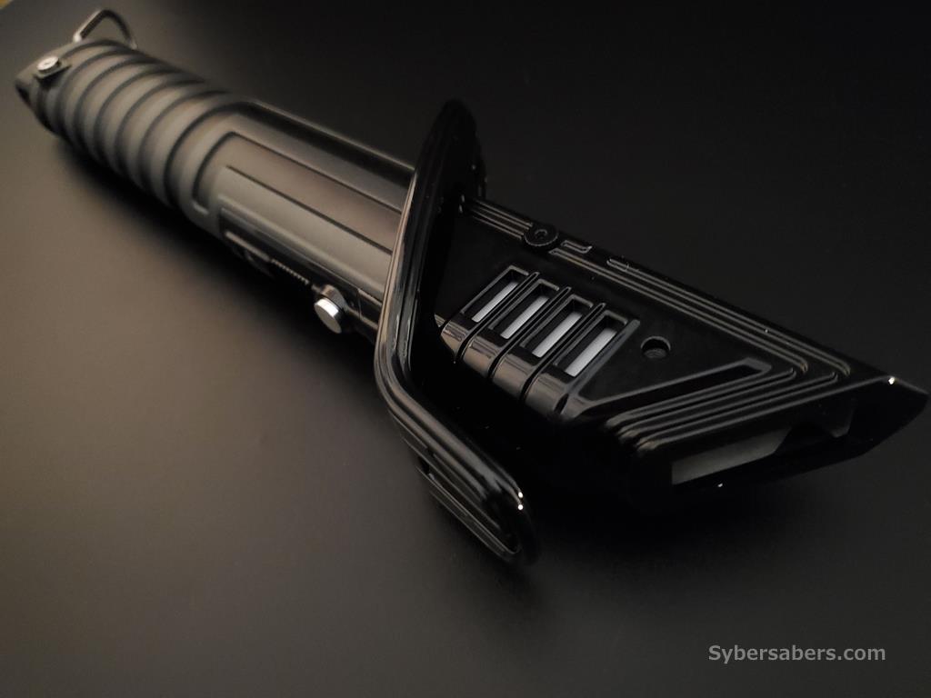 一般的にカスタムライトセーバーはアルミニウム素材でできたものが中心ですが、こちらのダークセーバーは独特の質感をスチールで表現されているので、ずっしりとした重みがありますよね。