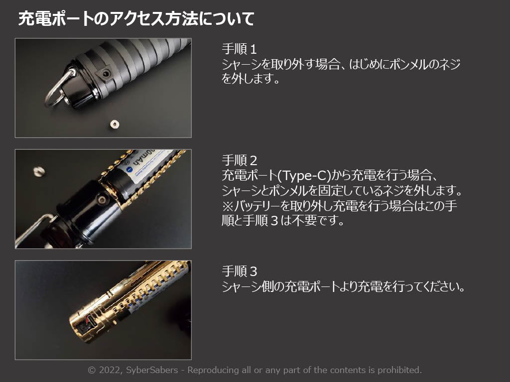 ・一部のシャーシはゴールドで塗装されていますが、シャーシの特性上、取り外しや取り付けの際にヒルト内部との摩擦や接触により、塗装が剥がれやすくなっております。これは製品の特性によるもので、異常や不良には該当しませんので予めご了承ください。